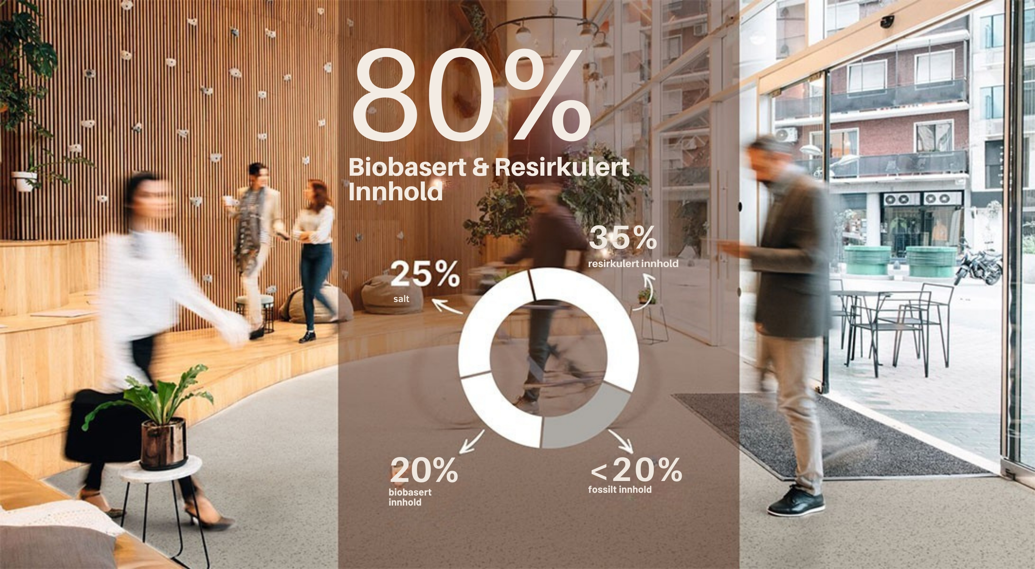 Med ett innehåll bestående av 80 % biobaserade råmaterial, mineraler och återvunnet material, däribland 20% växtbaserat avfall från ansvarsfulla källor, erbjuder Premium en markant grönare lösning. Dess klimatavtryck är 29% lägre jämfört med genomsnittliga heterogena golv.