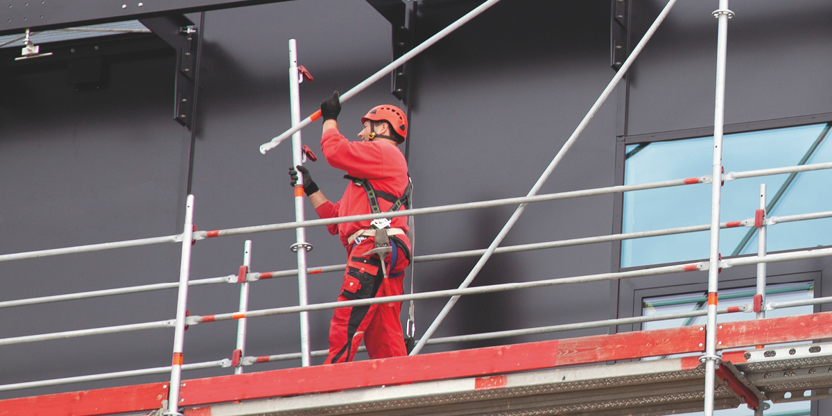 AGS är fullt kompatibelt med Layher Allround. En flexibel, effektiv lösning som minskar risken för fallolyckor vid montage av fasadställning.