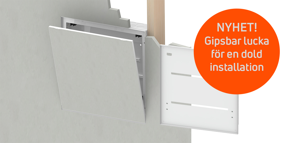 Gipsbar front - en gipsbara lucka till Thermotechs fördelarsskåp som därmed blir en naturlig och näst intill osynlig del av övrig väggbeklädnad. I montern visar vi hur det ser ut!