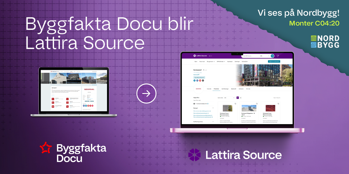 Under Nordbygg 2026 kommer vi att presentera vår största nyhet hittills. Kom förbi oss i monter C04:20 så får du en exklusiv visning av Lattira Source – den nya plattformen som förenklar hur byggprodukter hittas, jämförs och föreskrivs i projekteringsarbetet.