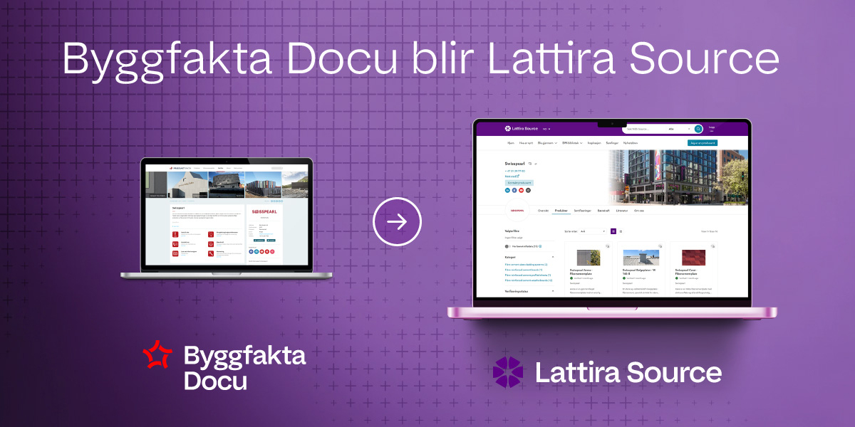 Under våren 2026 byter Byggfakta Docu namn och blir Lattira Source. Det är en ny plattform med global räckvidd, utvecklad för att förenkla hur byggprodukter hittas, jämförs och föreskrivs i projekteringsarbetet.