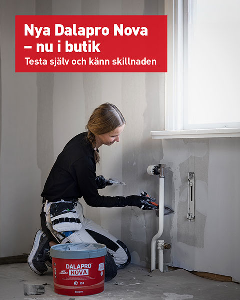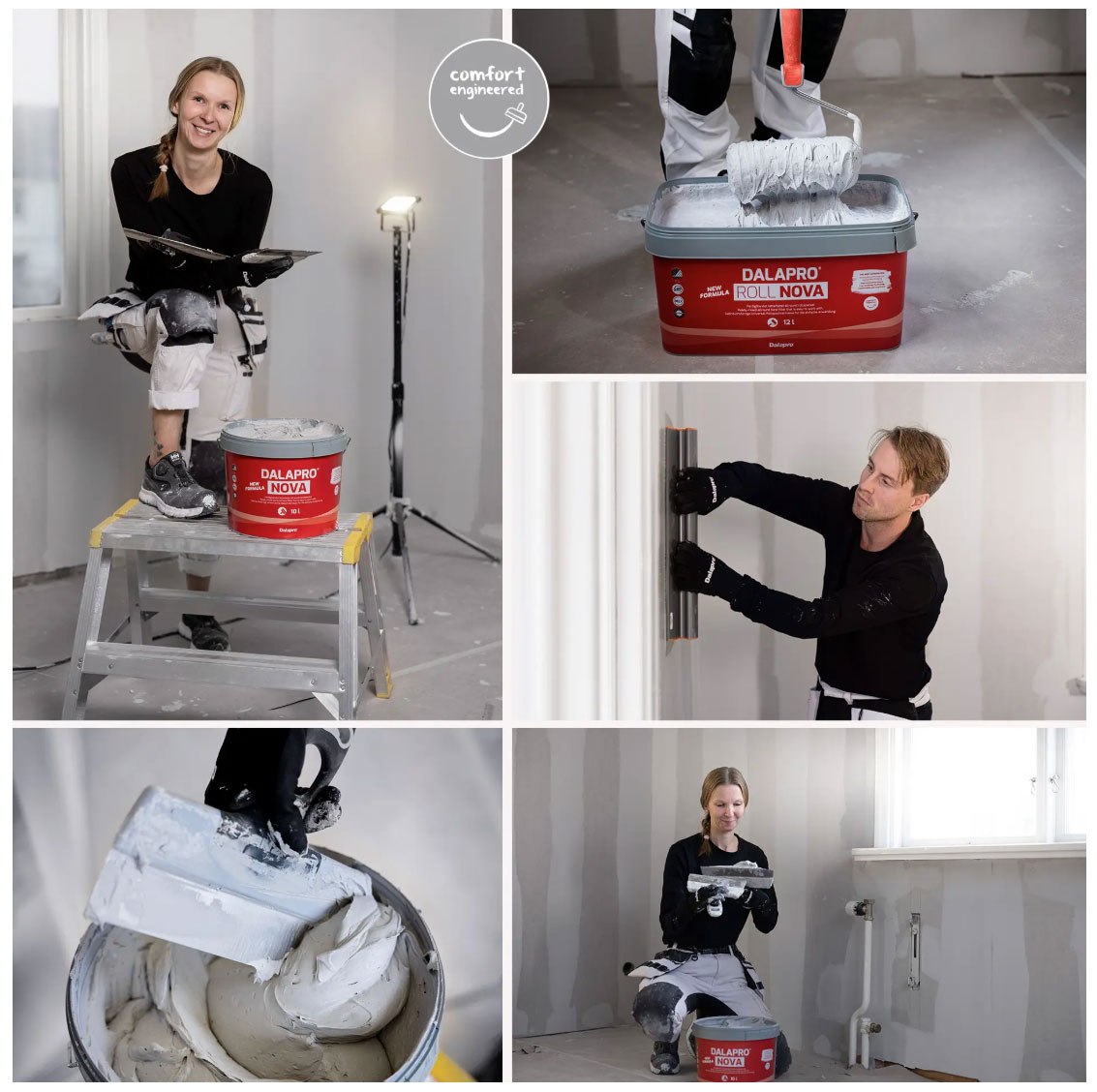 Nya Dalapro Nova är ett färdigblandat allroundspackel som kombinerar utmärkt fyllnadsförmåga med ergonomiska egenskaper. Med sin konsekvent höga kvalitet och stabila prestanda levererar Dalapro Nova fantastiska resultat varje gång – perfekt för dig som söker ett pålitligt spackel som sparar tid och energi för fritid och familjeliv.