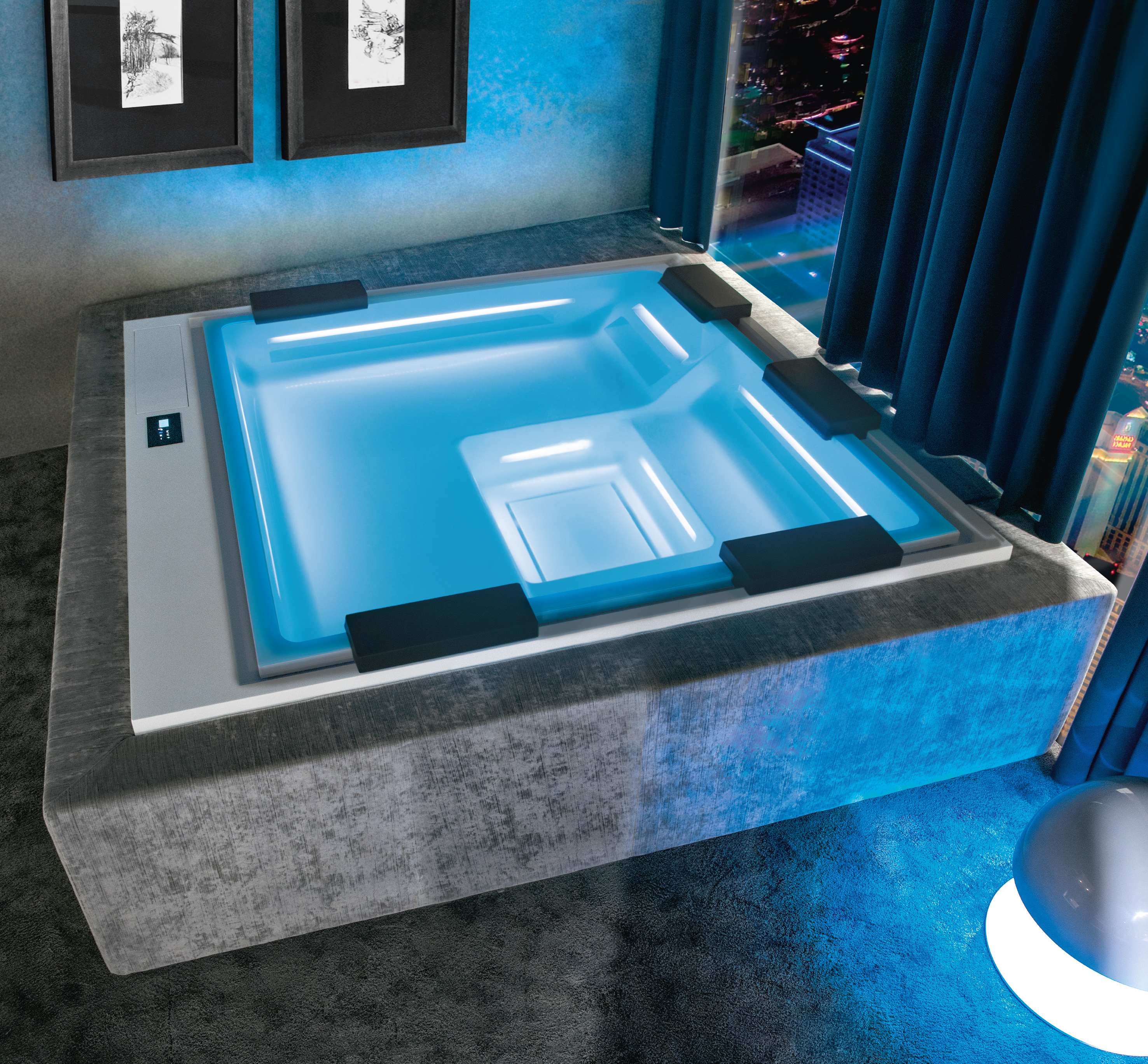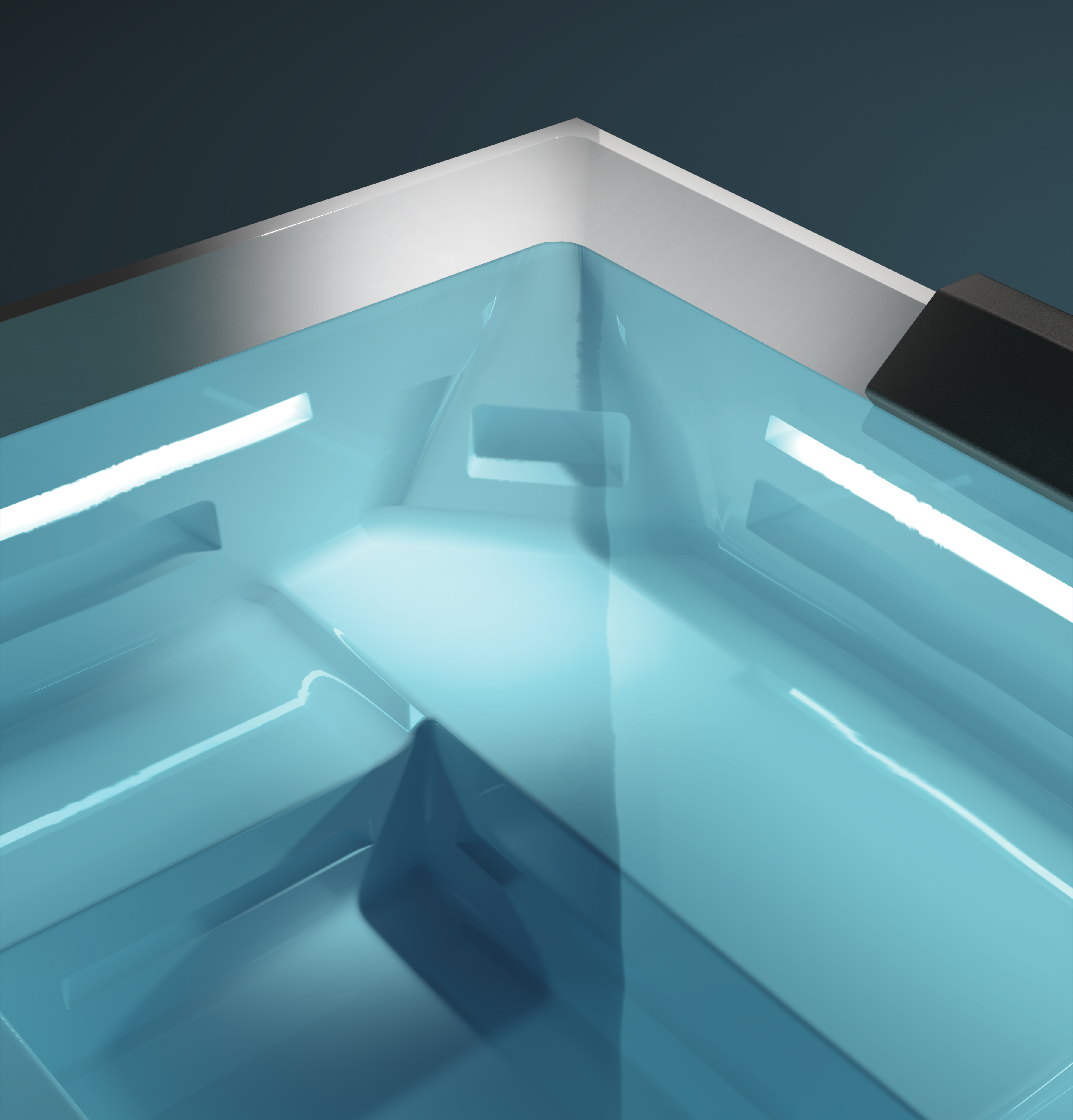 Ghost-serien bygger på en banbrytande idé: helt dold hydromassage. Alla munstycken och tekniska komponenter är integrerade i en intern spalt, vilket ger en ren och exklusiv design utan synliga jets. ()