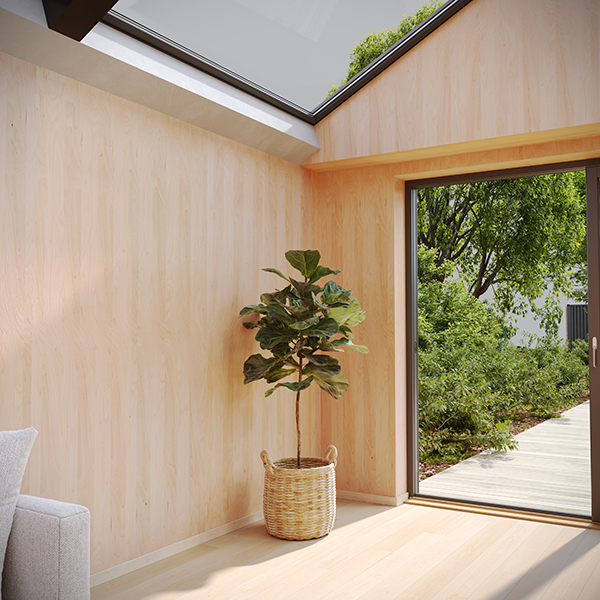 Vito Lackad Fanérskiva består av 7 lager björkplywood med ett 8:e dekorlager av lackerad björk- eller ekfanér. På baksidan finns det ett balanspapper för att bibehålla en plan och stark väggskiva.