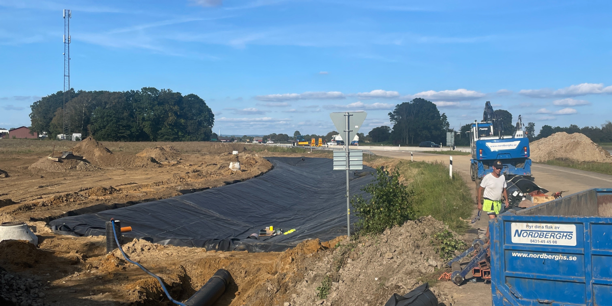 Hanteringen av regn- och ytvatten är en växande utmaning i takt med att klimatförändringarna leder till kraftigare nederbörd och fler extrema väderhändelser. Effektiva och hållbara lösningar är nödvändiga för att förebygga översvämningar, skydda miljön och avlasta avloppssystemen. Ett aktuellt projekt vid E6 utanför Strövelstorp i Skåne visar hur moderna geomembraner kan spela en central roll i etableringen av långsiktiga anläggningar för dagvattenhantering.