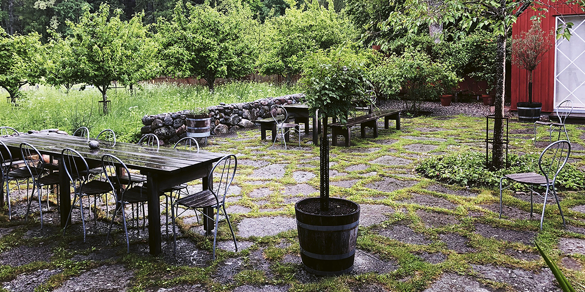 Bakgård växte så småningom ut ur trädgården och in i samtiden. I rollen som inredningsarkitekt ritade Jonas in möbeln i nya sammanhang, som på restaurang Aira på Djurgården, där långborden skapar samvaro på ett okonstlat sätt.