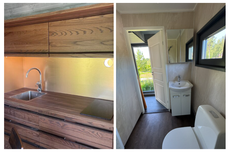 Även om husen endast är 30 kvadratmeter upplever många att de känns större. Kunderna säger ofta att det känns mycket rymligare än det såg ut på nätet. Vi har lagt tid på smarta lösningar, och det märks, säger Björn. Designen är funktionell och mysig, det kostar inget extra utan följer med huset.