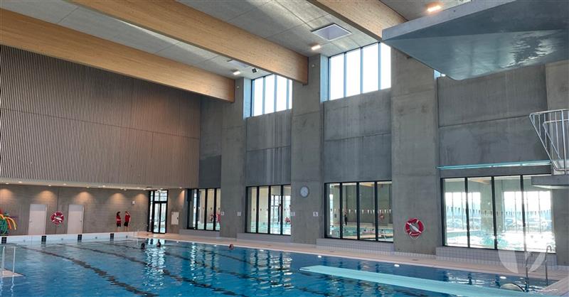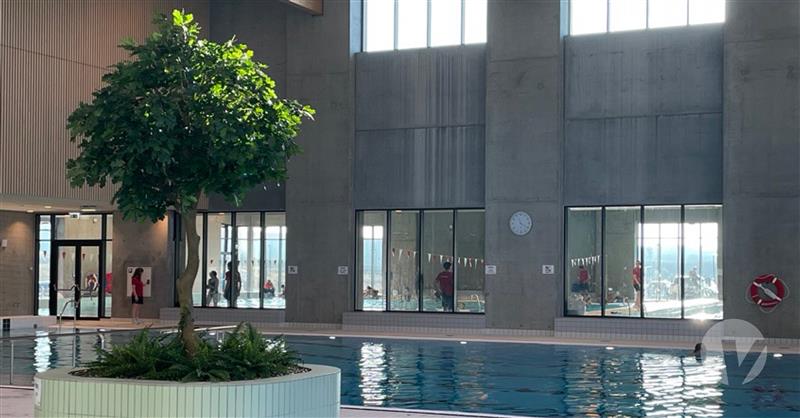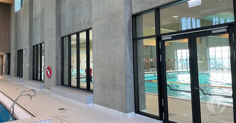 Med brandklassat glas från Vetrotech skapas ett naturligt ljusflöde genom hela simhallen. Glaslösningarna uppfyller höga brandkrav och integreras samtidigt harmoniskt i arkitekturen, utan att kompromissa med funktionalitet eller ljusinfall.