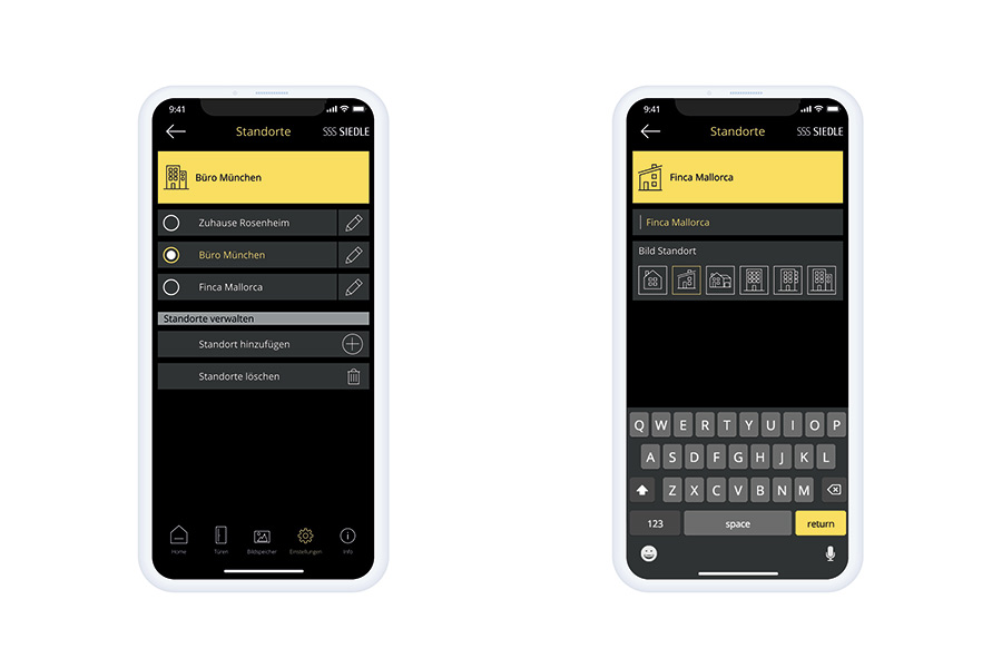 Siedle-appens höga funktionalitet gäller oavsett vilket system man först har knutit appen till, och både installation och hantering sker mycket användarvänligt genom att de enskilda stegen är intuitiva. Du kan tilldela varje plats en ikon och ett namn som du väljer själv.