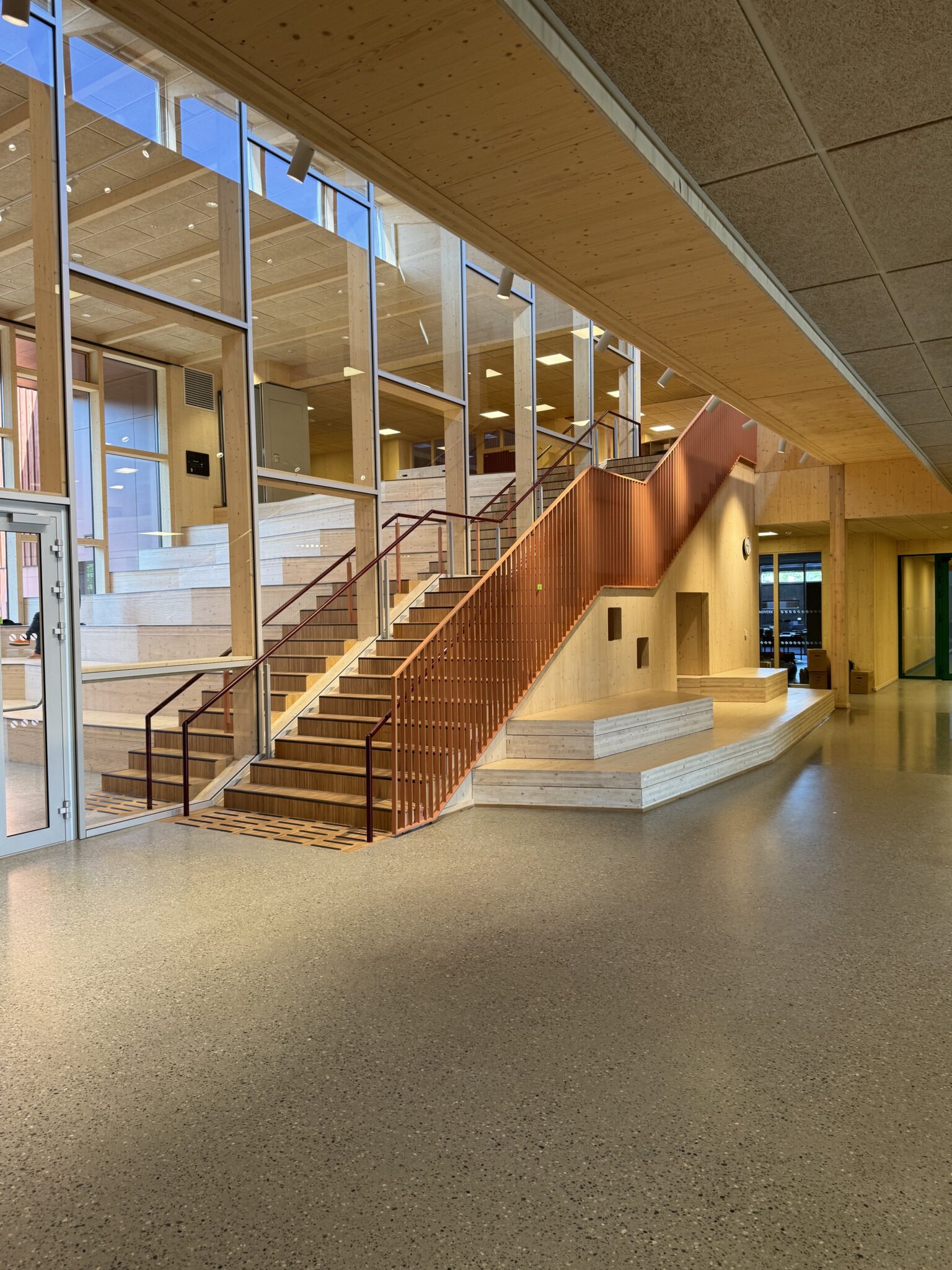 Fibo är en robust lösning för miljöer med hög belastning och höga krav. I en skolbyggnad som Hokksund är det avgörande att välja material som behåller sitt utseende och hygien över tid. Här har Fibo en central roll i att skapa funktionella och trivsamma rum