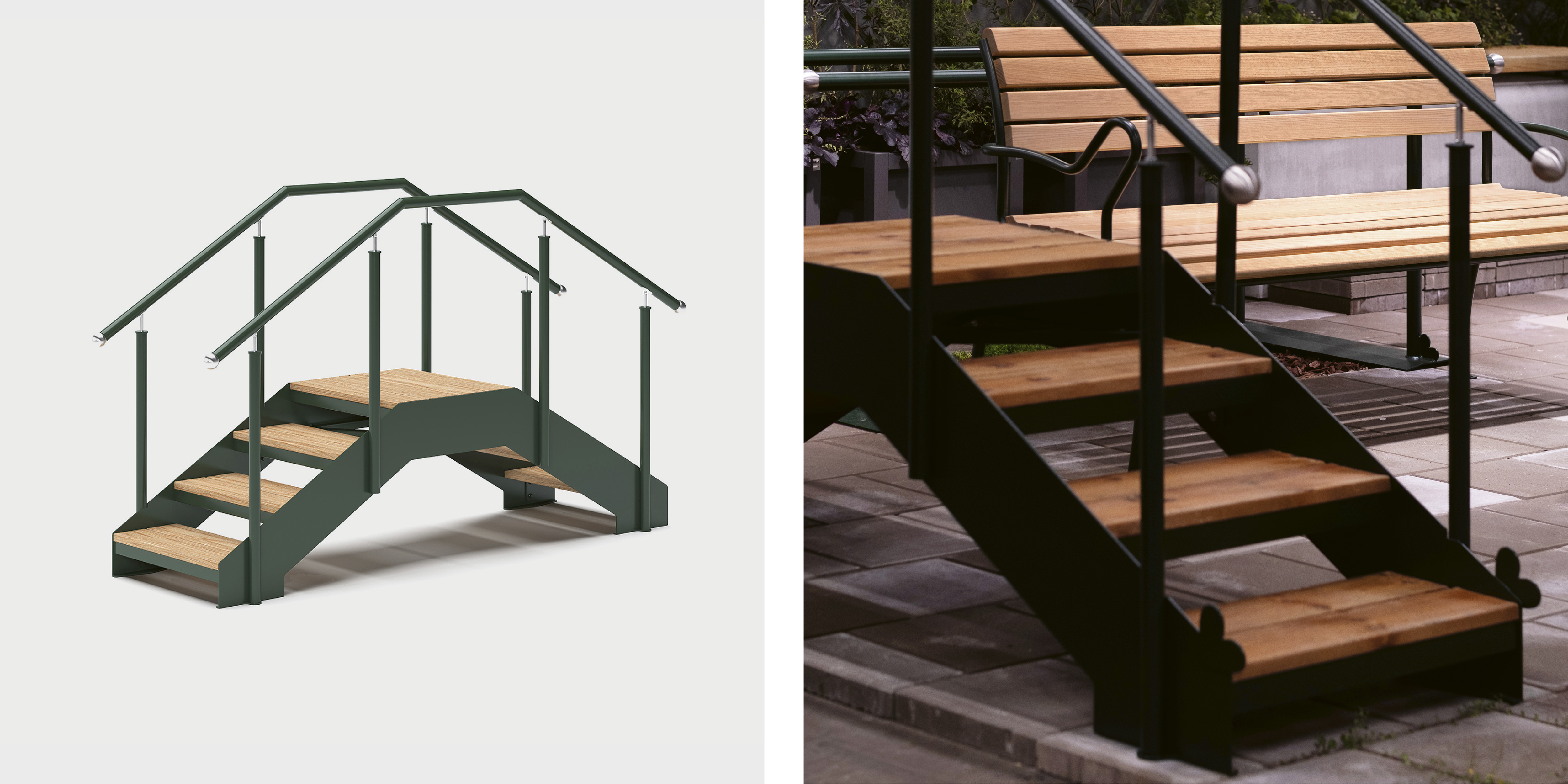 Trappa är designad för att stärka självständighet och rörelseförmåga. De räfflade trästegen och de rostfria handledarna ger trygghet i varje steg och gör träningen både säker och motiverande. Här kan användare öva balans, styrka och koordination – färdigheter som bygger frihet och självförtroende.