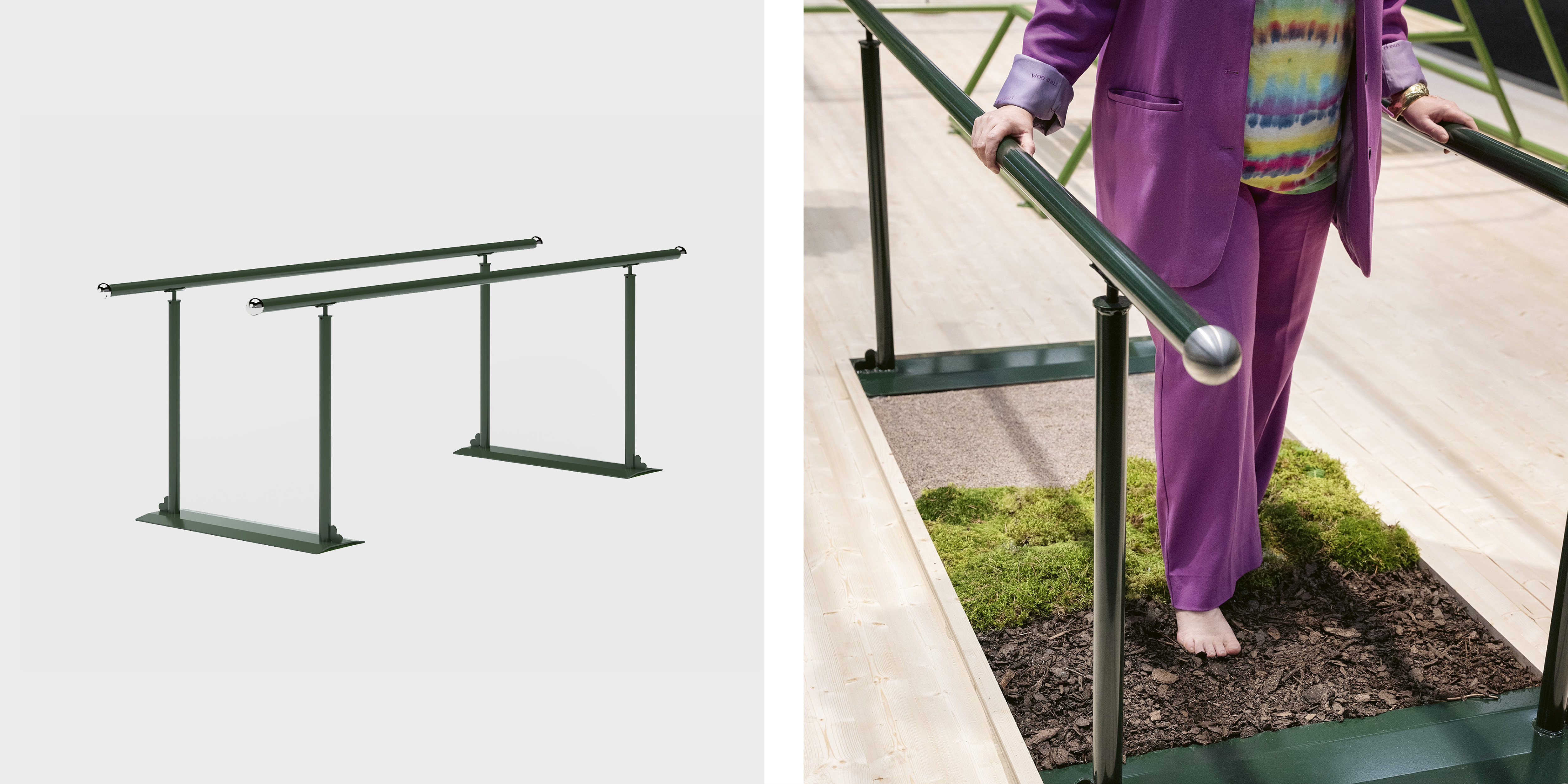 Portal markerar övergångar och skapar struktur i trädgårdar och parkmiljöer. De generösa måtten gör att två rullstolar kan passera sida vid sida, och den robusta konstruktionen i rostfritt stål tillför både orienterbarhet och värdighet. Portalen fungerar som entré, riktmärke eller avslut på en promenadslinga – en detalj som ger ordning, trygghet och rumslighet i utemiljön.