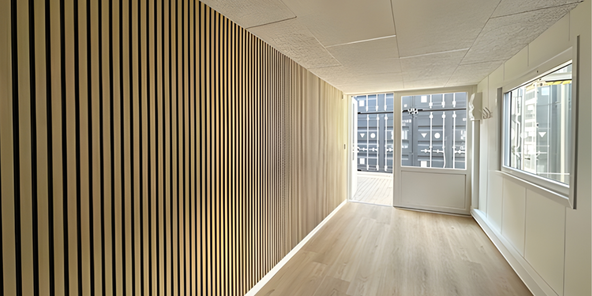 I vår monter kan du uppleva två lösningar på nära håll. Vi presenterar vår kontorscontainer – en komplett, inredd lösning med golv, väggar, tak och fönster, framtagen för att skapa funktionella arbetsytor direkt på byggarbetsplatsen.