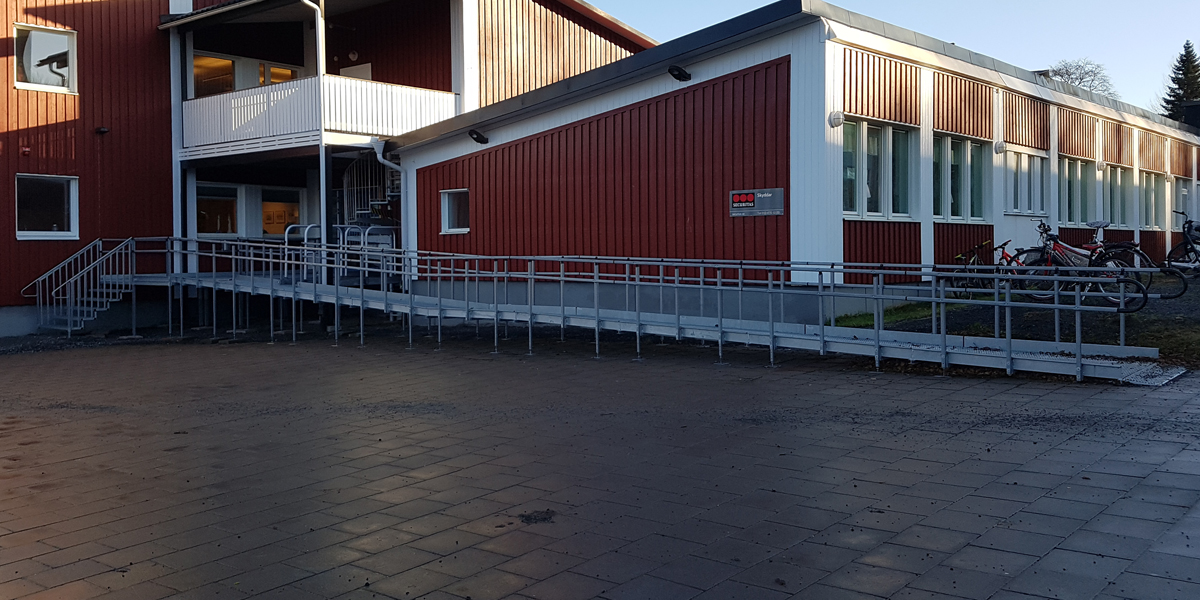 Vi jobbar med ett flexibelt modulsystem och massor av standardmodeller vilket medför att både projekteringen och monteringen av rampen blir smidig, samt att leveranstiden hålls kort.
