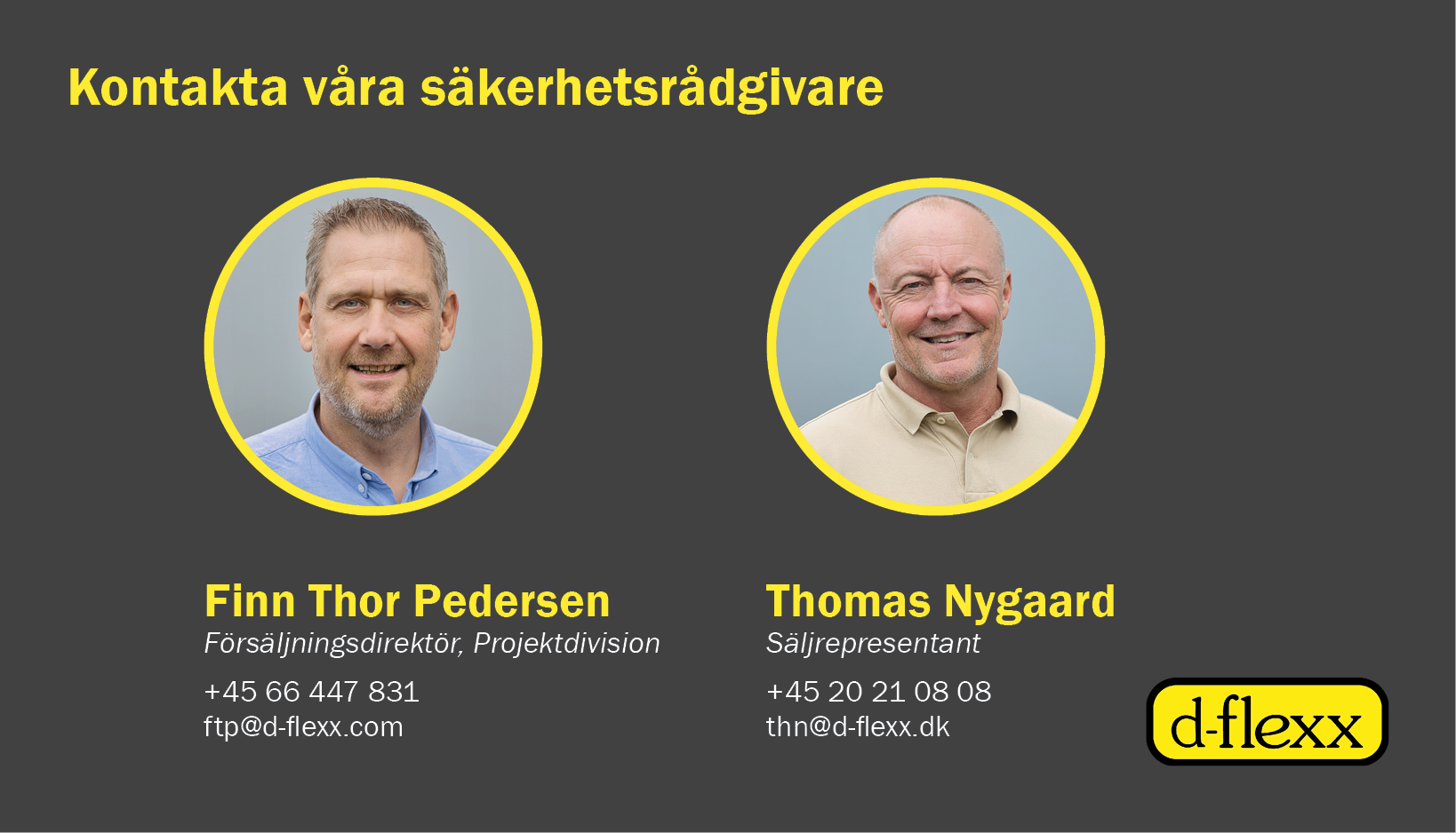 Färger har en stark och väl dokumenterad påverkan på beteende. Gul, som ofta används inom arbetsmiljösäkerhet, värderas för sin höga synlighet och starka koppling till försiktighet. Därför har d-flexx valt en klar gul färg för att skapa en uppmärksamhetsskapande kontrast mot omgivningen och naturligt aktivera vaksamhet.