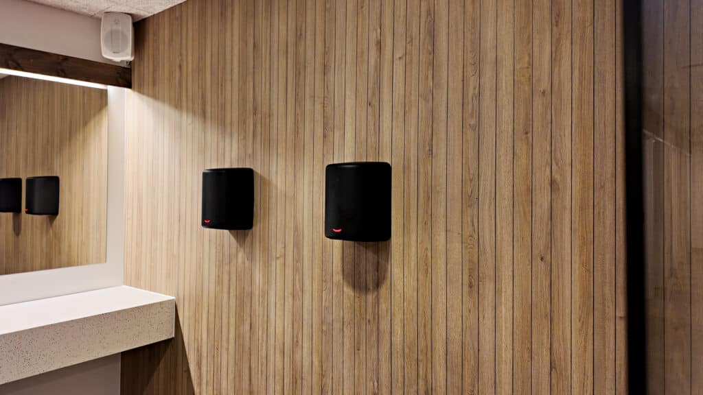 När Fårup Sommerland öppnar portarna inför sin 50:e säsong är det med nya toalettfaciliteter där både estetik, funktion och hållbarhet har stått i fokus. I utbyggnaden valdes Fibos väggskivor som väggbeklädnad bland annat i en av parkens trevliga kaféer, på alla toaletterna och i personalduschar – en lösning som i stor grad inkluderar unika skräddarsydda lösningar anpassade till Fårups lekfulla designuttryck.