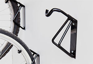 Väggkrok för cykel, förvaring vid styret mot sadelväggen. Installation i olika höjder.
