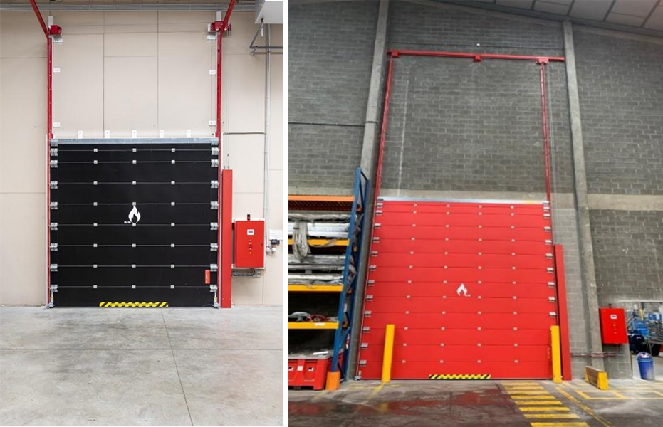 Vi har också Smoke Lock. Dessa industriportar är utrustade med en specialutvecklad tätning som säkerställer exceptionell spaltförslutning vid både omgivningstemperaturer (Sa) och förhöjda temperaturer (Sm vid 200 °C). Detta förhindrar spridning av giftig, brandfarlig och ofta dödlig rök, vilket gör att utrymningsvägar kan användas längre.