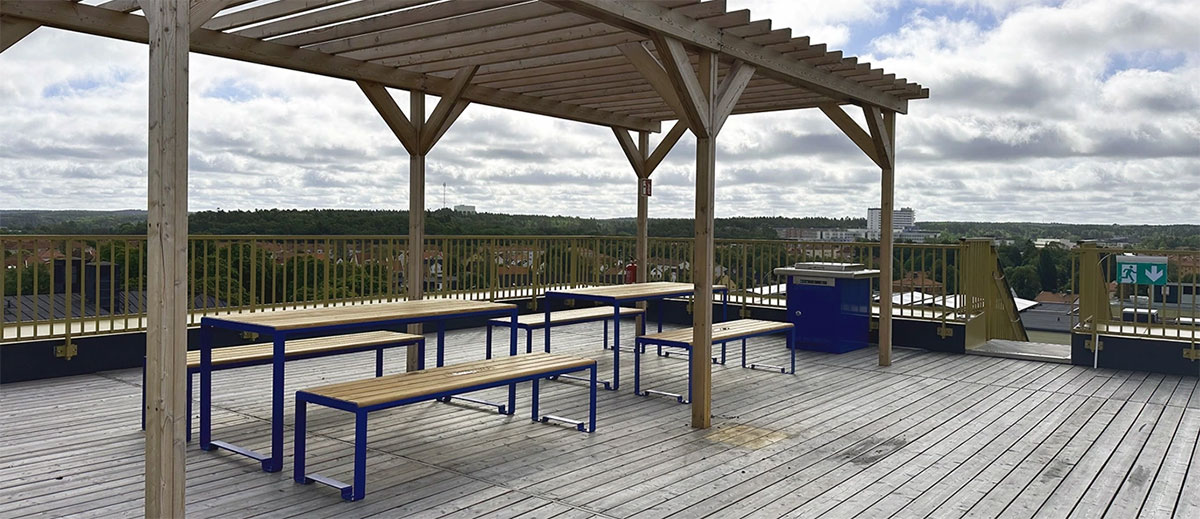 Häng med upp på nionde våningen! Här har fastighetsägaren skapat en fantastisk takterrass. De boende och företagen i huset får använda takterrassen så mycket de vill. Med solstolar, bänkar och bord samt elgrill finns här alla möjligheter för en trevlig AW med kollegorna eller kanske en grillkväll med grannarna. Bara att slå sig ner och njuta!