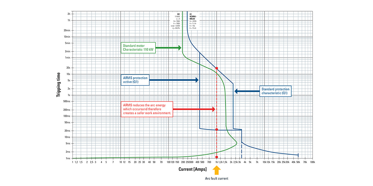 Eatons Arcflash Reduction Maintenance System™ är en patenterad funktion som kan fås med Eatons luftbrytare i IZMX/INX-serien och Eatons digitala NZM isolerkapslade effektbrytare. Systemet säkerställer en snabbare avstängning i händelse av ett ljusbågsfel. Frånkopplingen sker till och med snabbare än den som utförs vid en kortslutningsutlösning utan fördröjning.