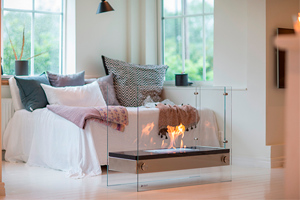 En fristående kamin eldas med bioetanol och lämnar varken lukt, sot eller uts...